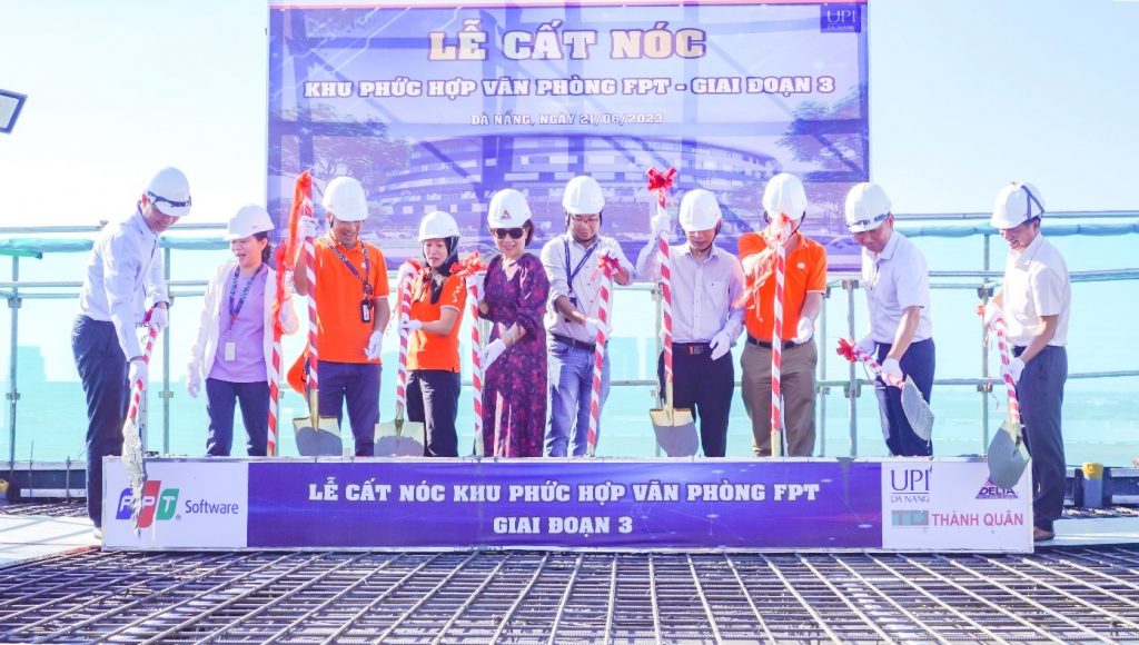 Đến dự buổi lễ cất nóc, về phía CĐT có anh Nguyễn Tuấn Phương – Chủ tịch FSoft Miền Trung, anh Lê Hồng Lĩnh – Giám đốc FSoft Miền Trung, anh Đỗ Văn Trinh – Trưởng BQL dự án FPT Complex FC3 của FSoft Miền Trung, chị Phan Thị Hải Hà – Trưởng phòng Xây dựng và Phát triển hạ tầng FSoft Miền Trung; về phía đơn vị TVGS có chị Đào Nguyễn Diệu Lan – Giám đốc Delta, anh Lê Ngọc Bảo – TVGS trưởng; về phía Viện quy hoạch xây dựng Thành phố Đà Nẵng có anh Võ Văn Lễ – Viện phó Viện QHXD Thành phố Đà Nẵng; về phía nhà thầu chính Thành Quân có anh Nguyễn Minh Trị – Chủ tịch HĐQT Thành Quân, anh Nguyễn Lam Giang – Giám đốc Thành Quân, anh Nguyễn Văn Nhân – Giám đốc dự án và hơn 30 khách mời cùng 60 thành viên BCH công trình dự án.