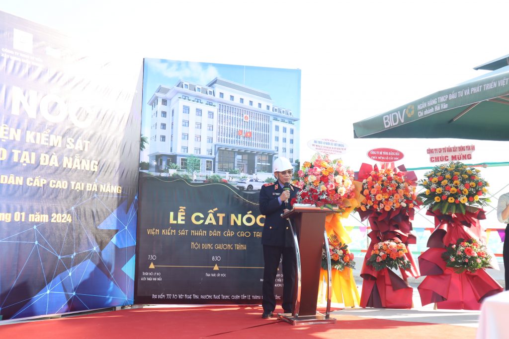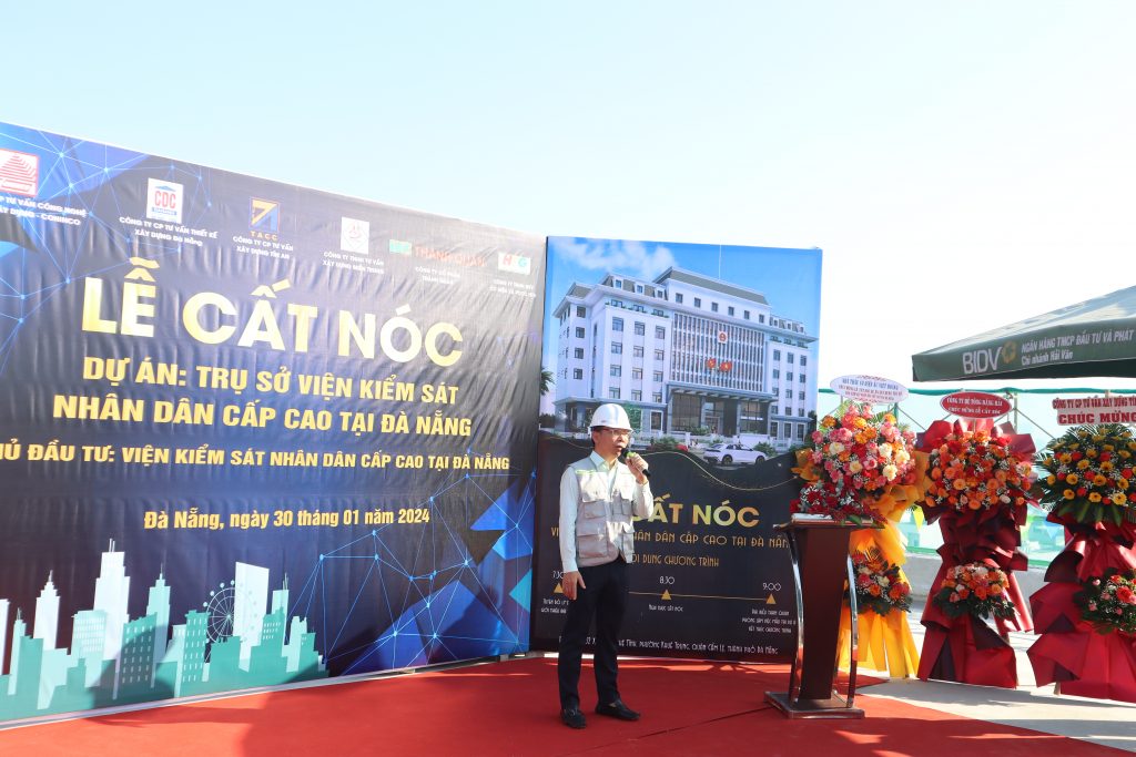 Ông Phạm Văn Cần – Viện trưởng, CĐT dự án Viện Kiểm sát Nhân dân cấp cao tại Đà Nẵng phát biểu chúc mừng và gửi lời cảm ơn đến liên doanh nhà thầu thi công, đơn vị TVGS, TV QLDA và BCH công trường tham gia thi công dự án.