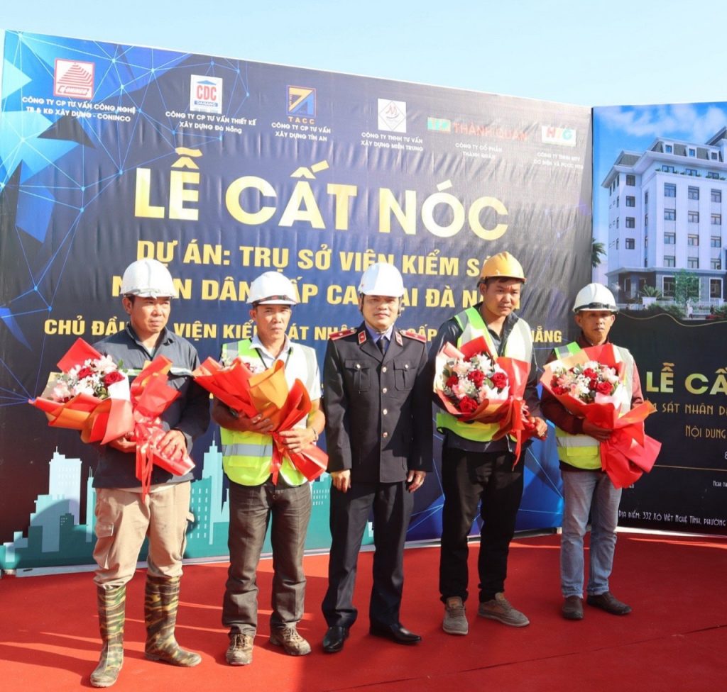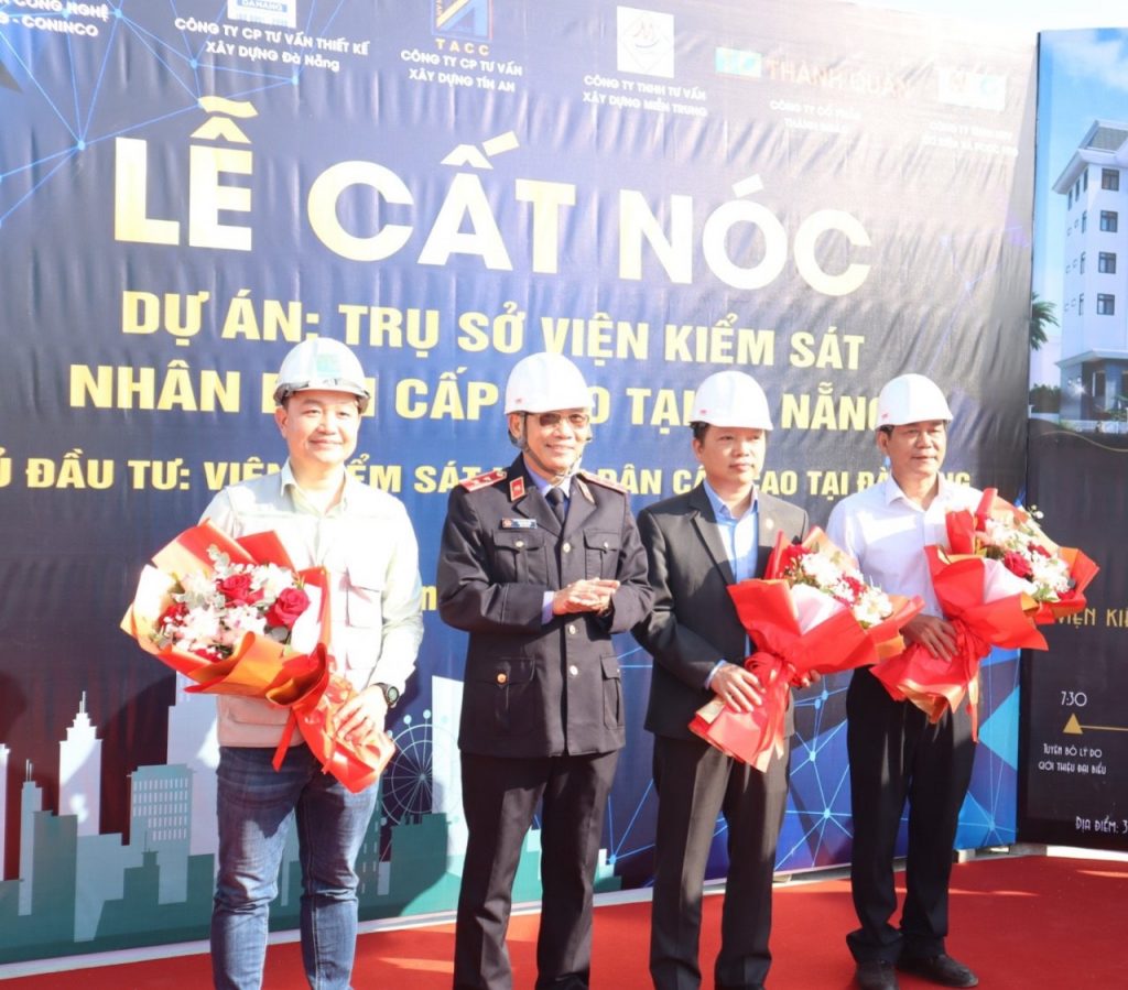 Đến dự buổi lễ cất nóc, về phía CĐT có Ông Phạm Văn Cần – Viện Trưởng, CĐT dự án VKS Nhân dân cấp cao tại Đà Nẵng; Ông Trần Đức Dương – Phó Viện trưởng, đại diện CĐT; Ông Phan Vũ Hoàng – Phó Viện trưởng; Ông Nguyễn Văn Chiến Phó Viện trưởng; Ông Phan Văn Tâm Phó Viện trưởng cùng các đồng chí đại diện lãnh đạo Viện nghiệp vụ, lãnh đạo Văn phòng Viện kiểm sát nhân dân cấp cao tại Đà Nẵng; về phía đơn vị QLDA Coninco có Ông Lê Hoàng Hải -Trưởng đoàn TV QLDA Coninco; về phía liên danh đơn vị TVGS Miền Trung – Tín An có Ông Lê Văn Hùng – Trưởng Đoàn TVGS – Giám đốc công ty TNHH Tư Vấn Xây Dựng Miền Trung; về phía đơn vị TVTK có Ông Phan Hoàng Tân – Phó Tổng Giám Đốc Công Ty Cổ Phần Tư Vấn Thiết Kế Xây Dựng Đà Nẵng; về phía liên danh nhà thầu thi công Thành Quân – HTG có Ông Nguyễn Minh Trị – Chủ tịch HĐQT, Nguyễn Lam Giang – Tổng Giám Đốc Công ty Cổ Phần Thành Quân và Ông Lê Văn Tuấn – Giám đốc Công ty HTG và các thành viên BCH công trình dự án cũng như anh chị em công nhân.