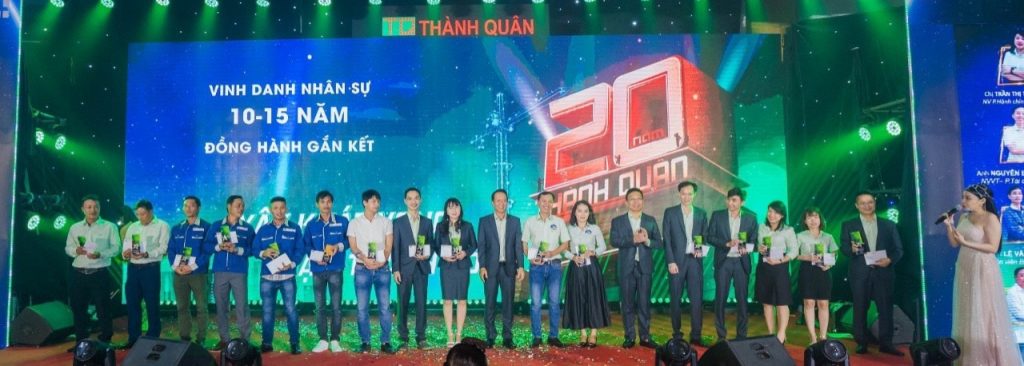 20 năm qua đối với Công ty Cổ Phần Thành Quân là một khoảng thời gian tuy không quá dài nhưng đã đánh dấu sự trưởng thành của công ty. 20 năm xây khát vọng của tập thể Thành Quân là hành trình gom góp, đắp xây từng viên gạch của thăng trầm – thử thách, của niềm tin – trách nhiệm, của nước mắt – nụ cười và của niềm tự hào – gắn kết. Để tôn vinh những thành tựu ấy cũng như tri ân tới các Quý Khách hàng – Đối tác đã luôn đồng hành trong suốt 20 năm qua, ngày 20 tháng 01 năm 2024 vừa qua, Công ty Cổ phần Thành Quân đã long trọng tổ chức “Lễ kỷ niệm 20 năm Thành lập công ty và Tiệc Tất Niên 2023” tại Royal Lotus Hotel, Đà Nẵng.